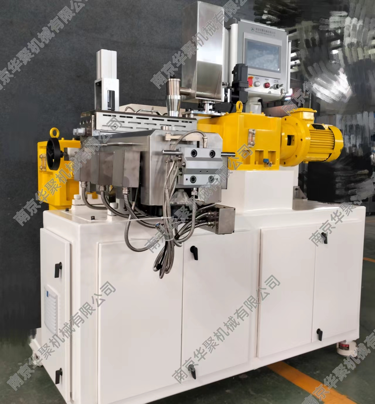 南京華聚機械有限公司致力于同向平行雙螺桿擠出機及連續(xù)密煉機的研發(fā)制造,在塑料改性、擠出發(fā)泡、高填充技術等相關領域擁有核心的技術和經驗。關鍵零部件如:連續(xù)密煉轉子及腔體、高扭矩齒輪箱、側向加料裝置、特殊工藝加工段等等均為自主研發(fā)。作為給客戶提供全套專業(yè)解決方案的“智造”商,華聚能為客戶提供以連續(xù)密煉和雙螺桿擠出應用為核心,結合高效能單螺桿各類擠出生產線的智能型成套裝備以及相關的工藝與工程領域技術開發(fā)、產品制造直至交鑰匙工程;